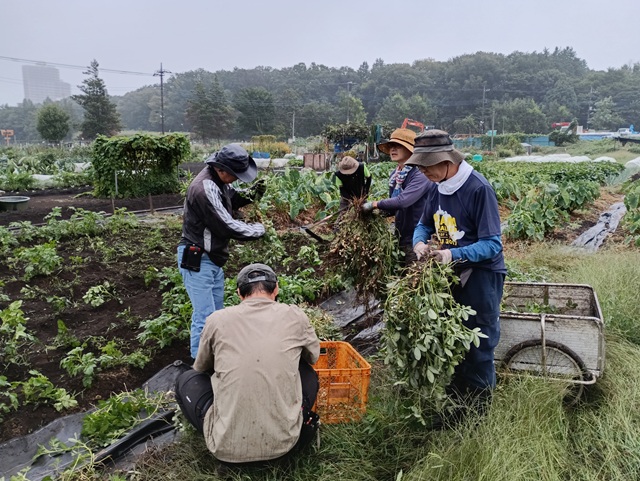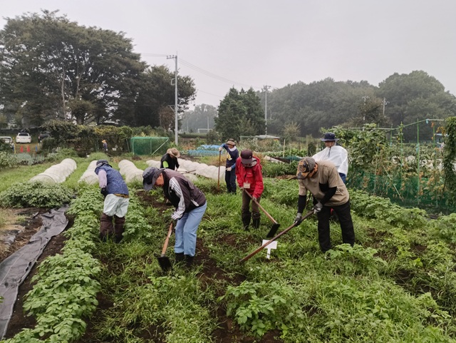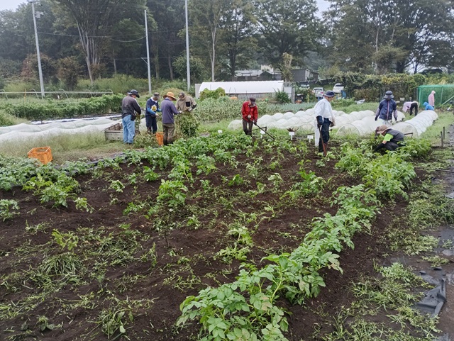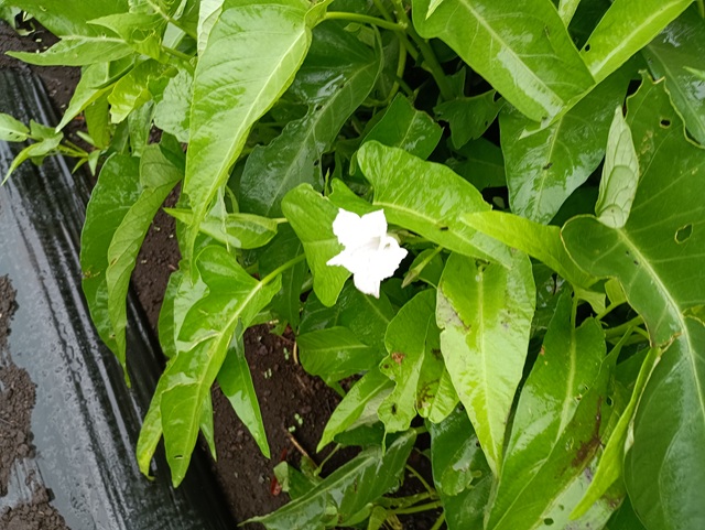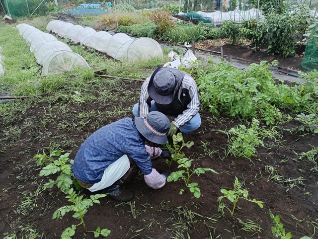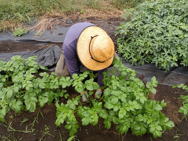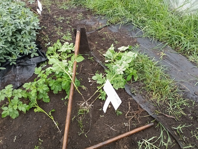 秋ジャガイモ、生育が悪いようで、雑草でいっぱいです