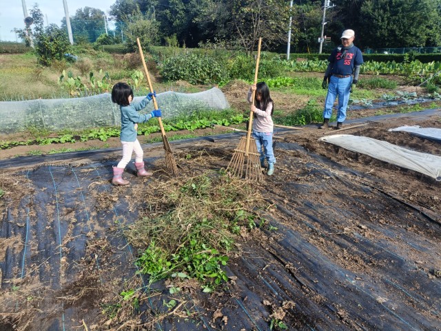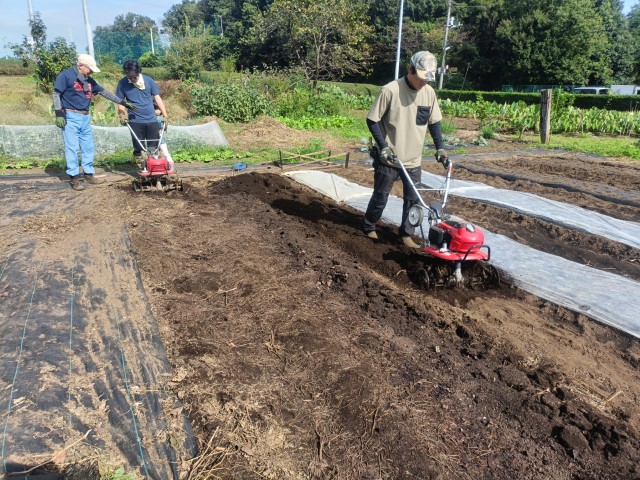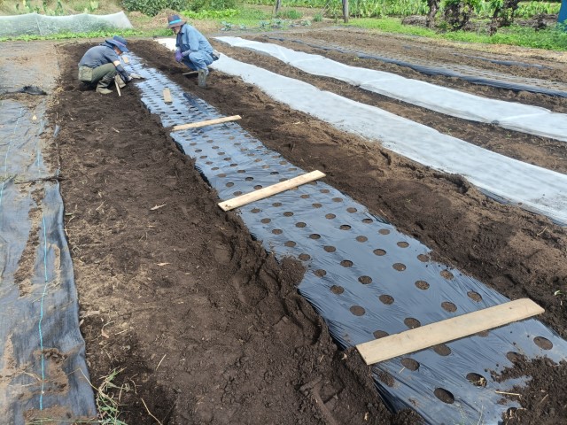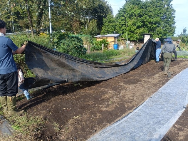 防草シートを剥がしてカブ用の畝立て