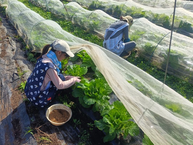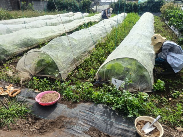 白菜とキャベツにボカシを追肥