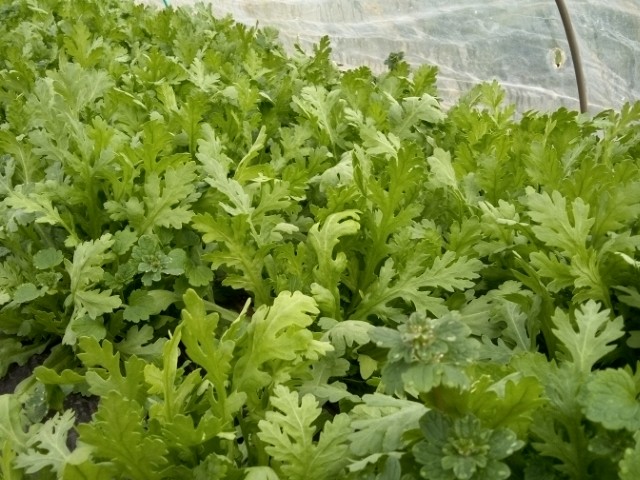 新鮮な春菊です。今季、初収穫です。
