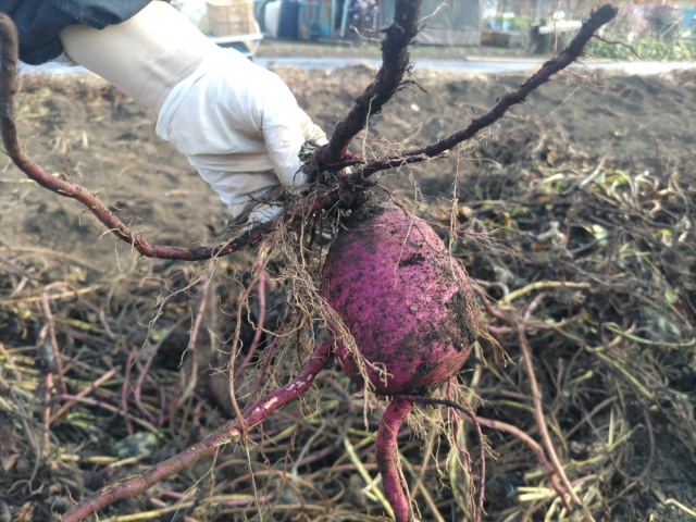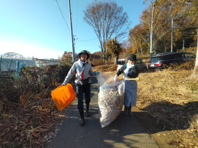熊手につるがひっかかるので、落ち葉を集めるのも一苦労!