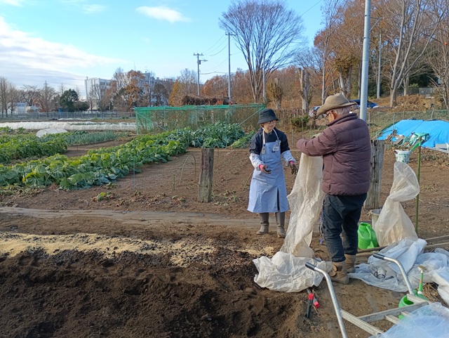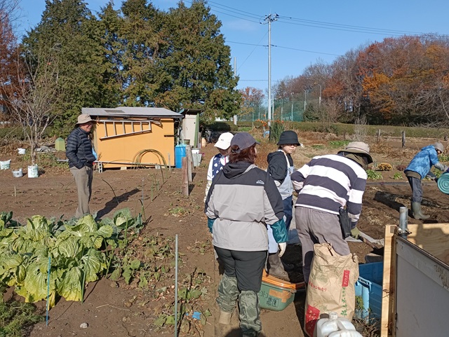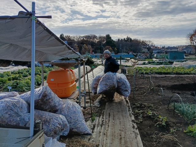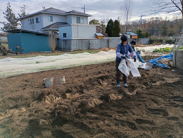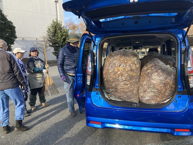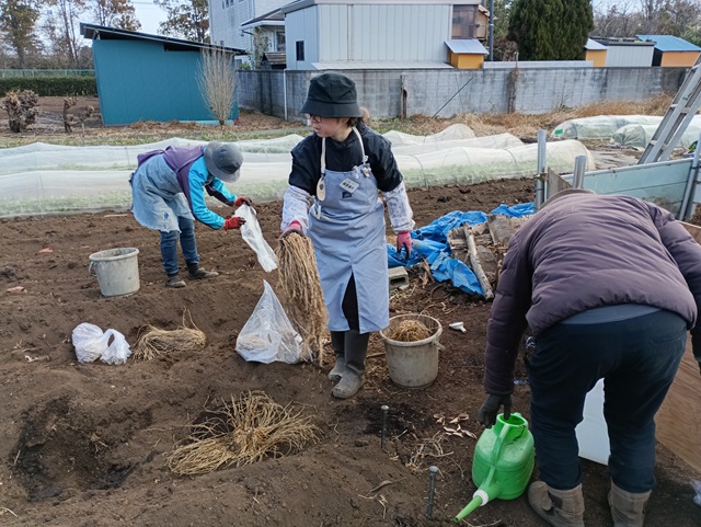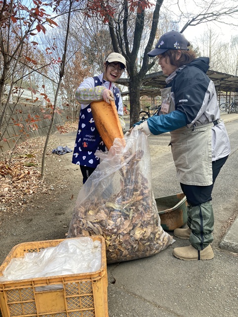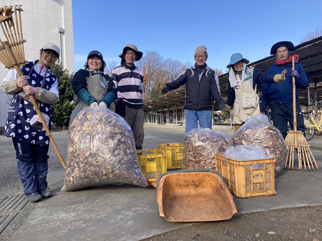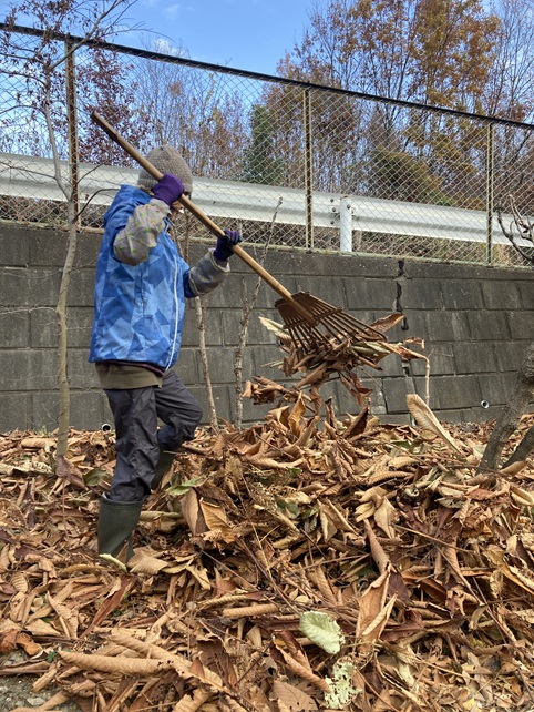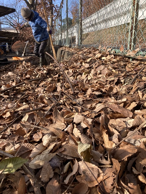 今日はアスパラ植え付け班と、所沢西高校落葉掃き班の