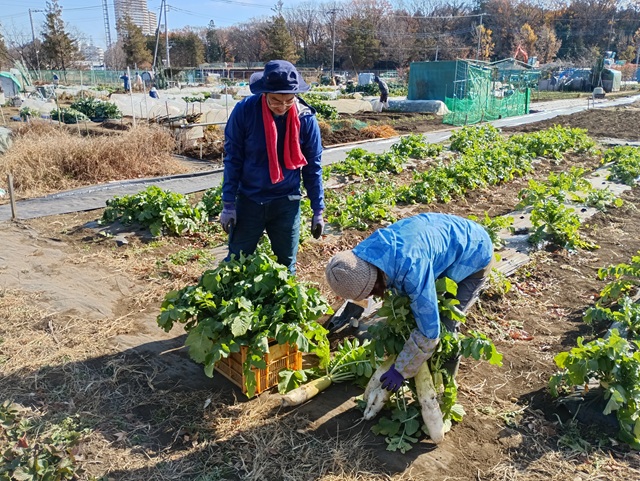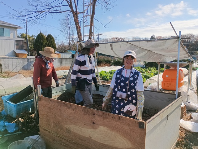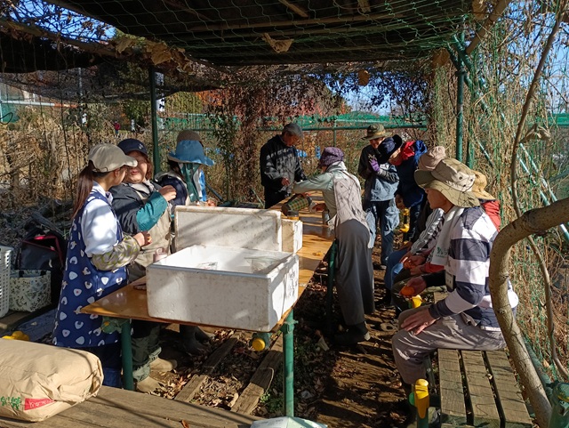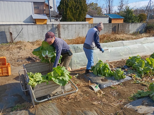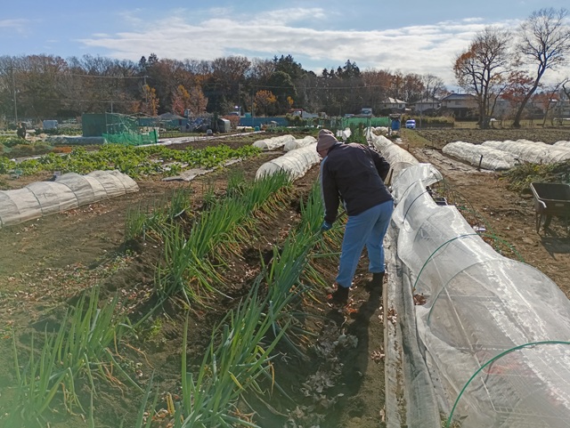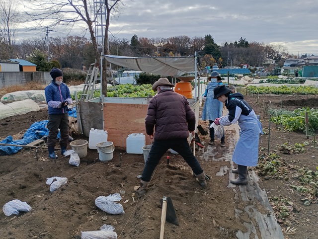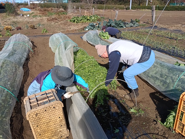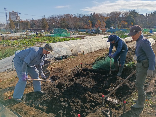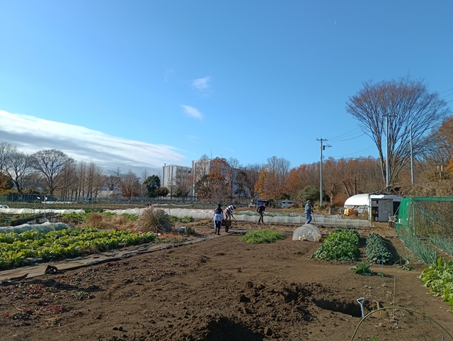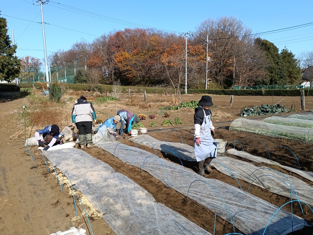 今日はアスパラ植え付け班と、所沢西高校落葉掃き班の