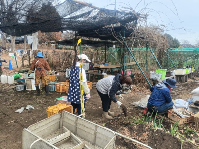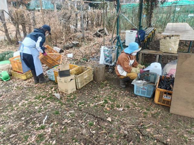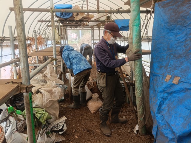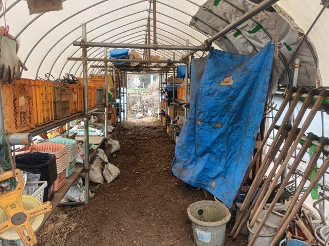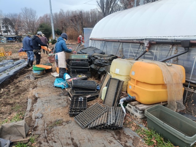ハウスの中のものを全部外に出して年に一度の大掃除です