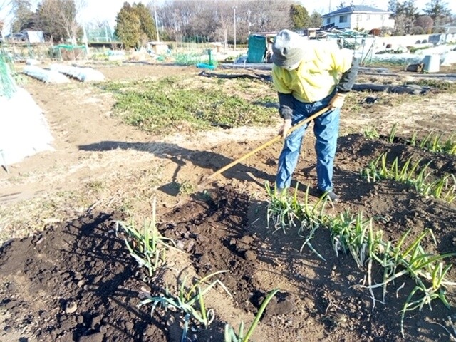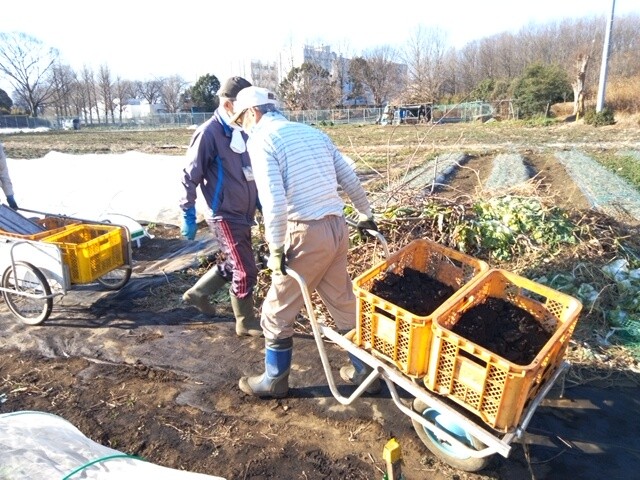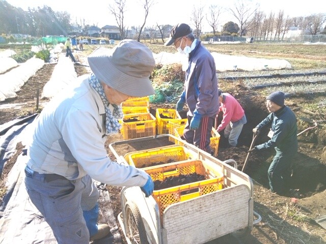 掘り出した土をケースに入れます。長ねぎの土寄せに使います。