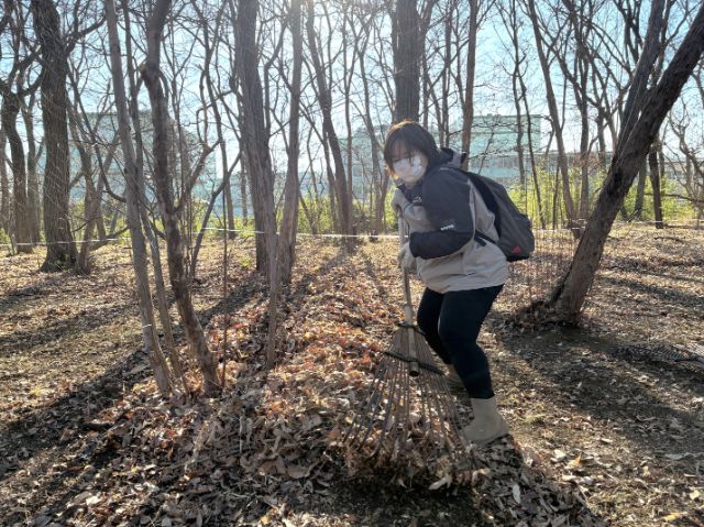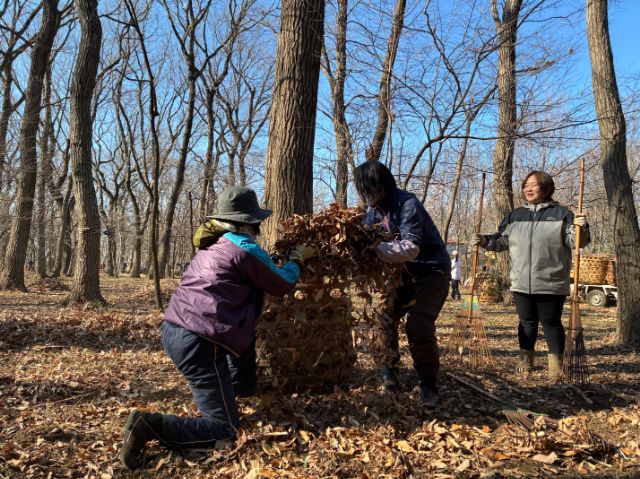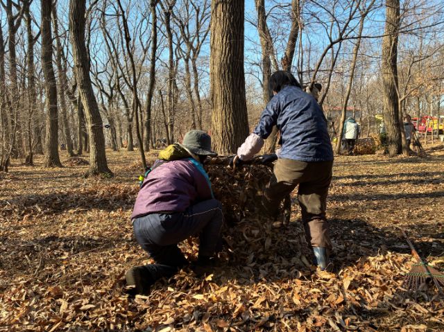 かさばる落ち葉を、ちょっとだけふみふみ。
