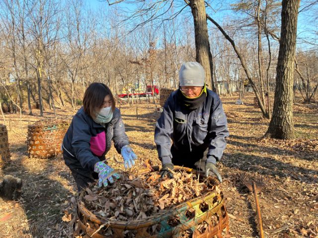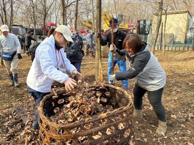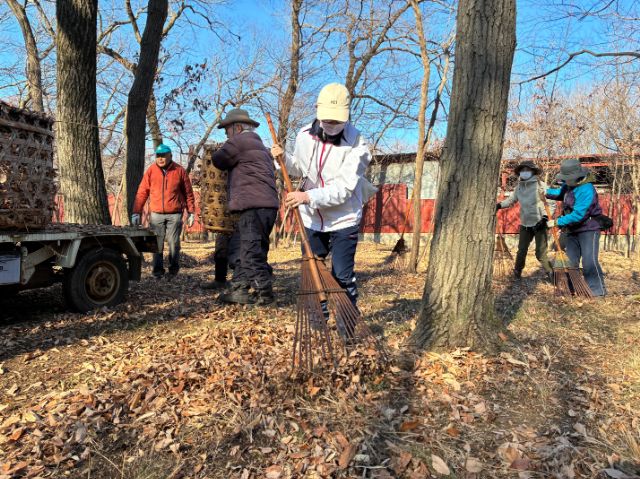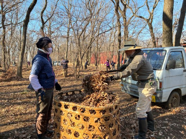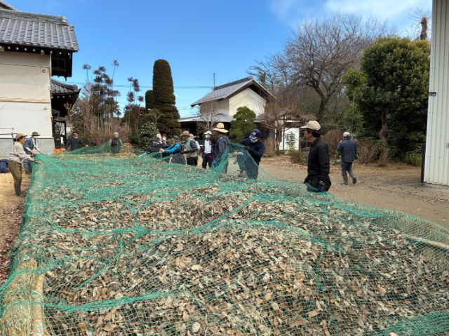 終わった後、伊藤農園さんの落ち葉堆肥場所も見せていただきました。