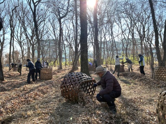 落ち葉をかごにぎゅぎゅっと押し込んで・・・