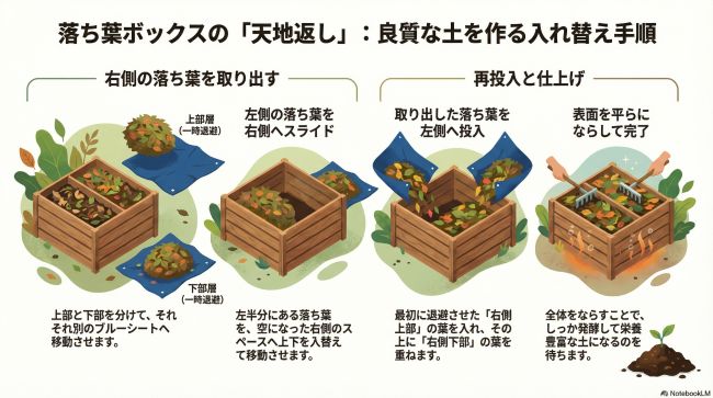今日は落ち葉ボックスの天地返しの作業を紹介します。