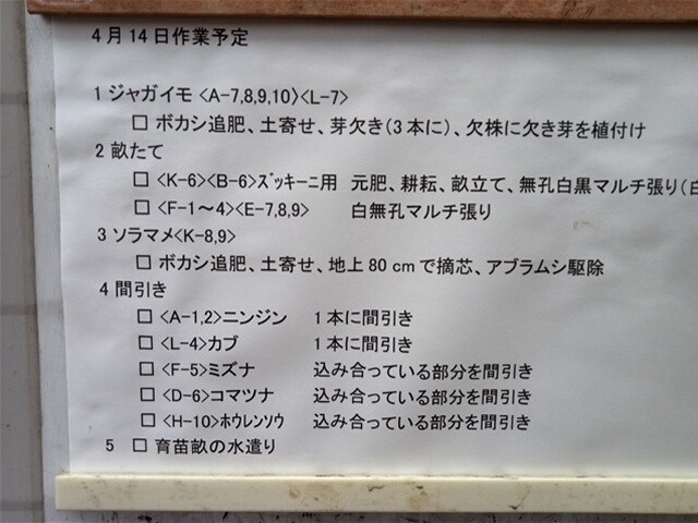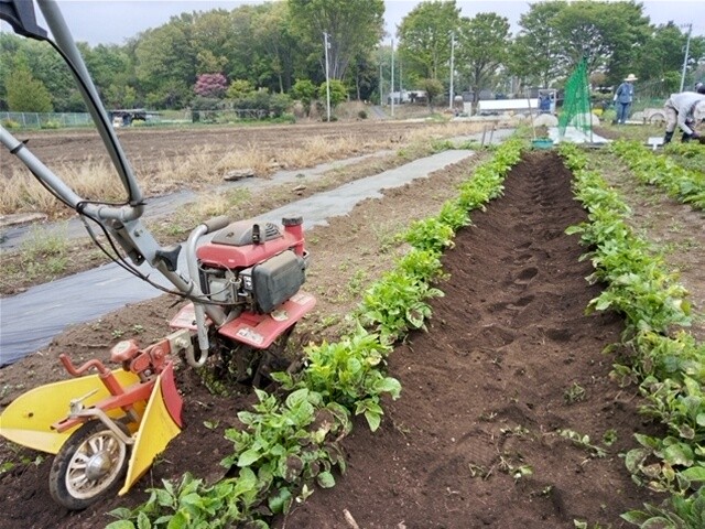 ジャガイモの芽掻きをして、追肥をして、さらに土寄せをしました。どこを芽掻きするか判断が難しいということでした。