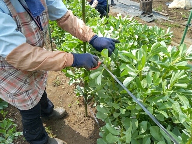 ソラマメの摘芯をしました。今年はアブラムシの被害がこれまでのところ少なく収穫への期待が大きいです。