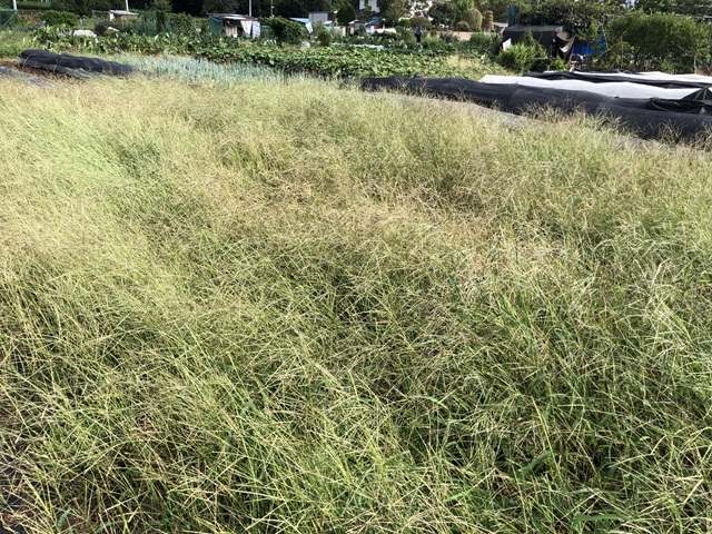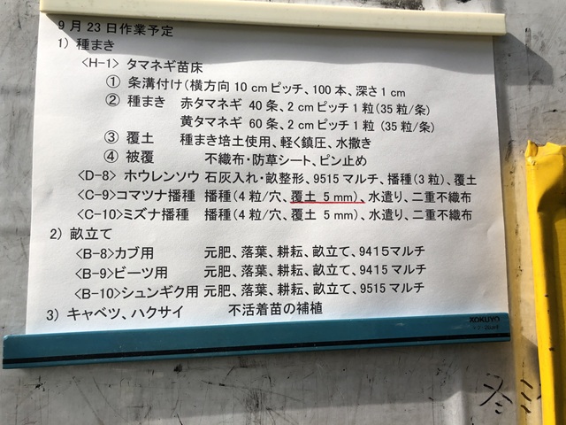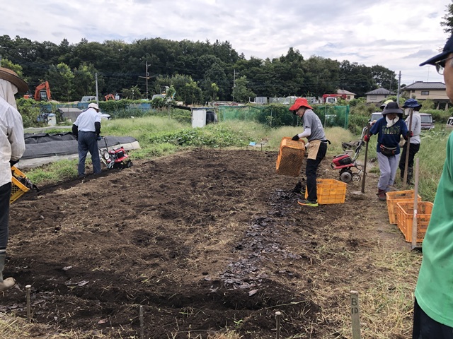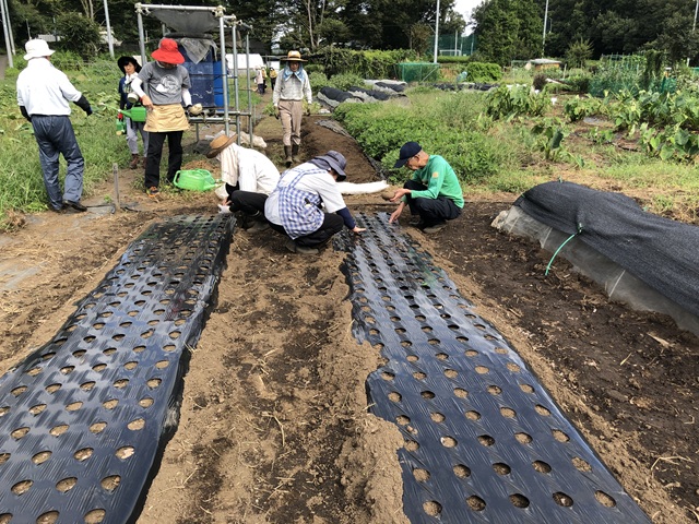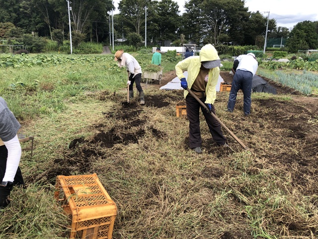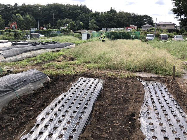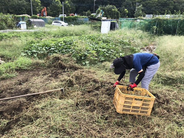 先週の蒸し暑さがウソのようなさわやかな風が吹き渡る農園でした。陽ざしはまだきついもののようやく秋らしいさわやかな天気のもとで作業できました。