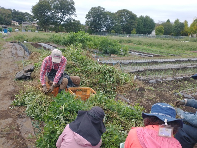 3.落花生、小松菜、ミズナ、ピーマンを収穫しました