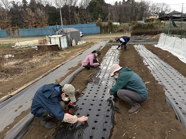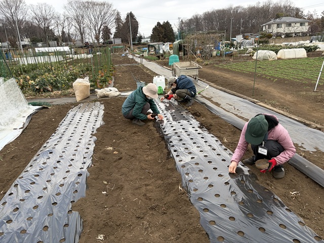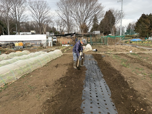 ミズナ用の畝に9515マルチを張りました
