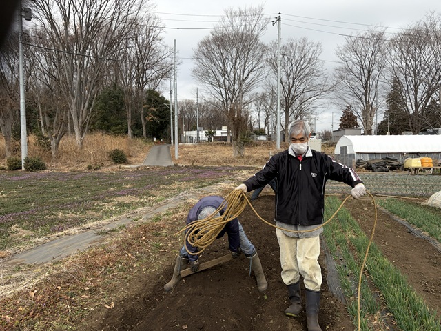 ミズナ用の畝を均しています